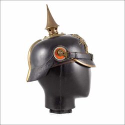 The pickelhaube is an exceptional example which is extremely high-quality. It is a size 55 and is complete with all of its original components, including gilded front plate with silver wash, leather chinstrap, a matched pair of Saxon kokarden, and all of its original gilded brass fittings. It is complete with its original leather and silk lining and is free from any extra holes to the leather body. A stunning example which is in overall excellent condition. Please be sure to review all photos.