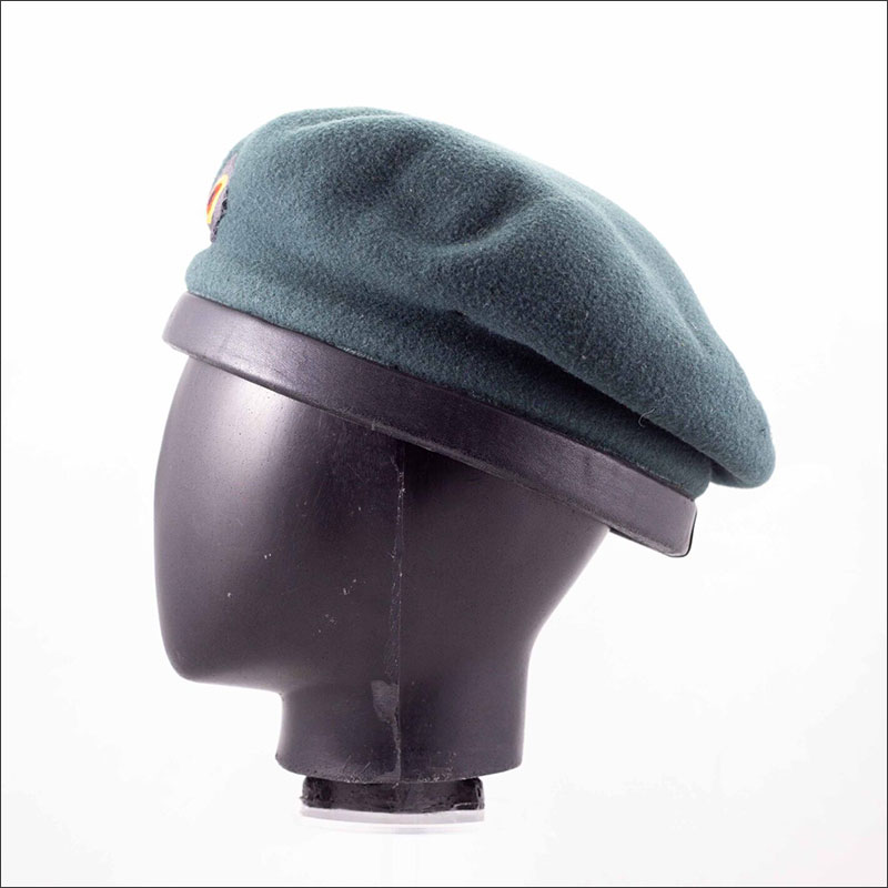 A khaki/green coloured beret was first worn by Panzer units in the early 60’s, so that the hard tankers beret didnt have to be worn outside the vehicle, as it was found to be cumbersome. Around 1970, both Panzer and Airborne units were issued coloured berets, Black and Red respectively, the badges being same design as current ones, but were deviod of the national flag motif at the base of the badge, in the late 70’s all units were issued the beret, and all badges sported the flag emblem.