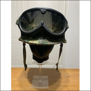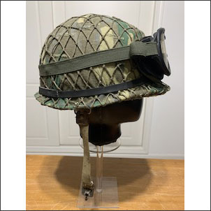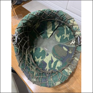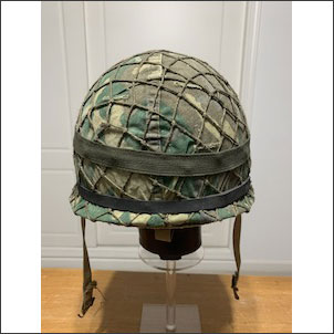 Casco M1 con funda ERDL y red, sotocasco con inscripciones.