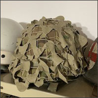 Casco M1 con costura fronta. Sotocasco Capaca con ojal frontal sin moficaciones. Barboquejo de cuero con sistema de cinturón, con hebilla, adaptación IMARA. Funda IMARA años 80, sin etiqueta, Red Nacional. Antiparras fravida 109, rojas. Nuquera de 4 broches.