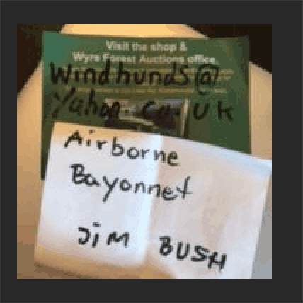 Aquirido a Wyre Forest Auctions, a quien se lo dio Jim Bush del 2 Para Regiment, B company (creo). segun el es de un soldado del GADA 101