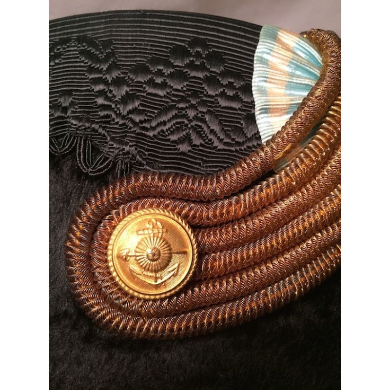 Info SER99: Hola ALF.AG un gusto poder colaborar con informacion para tu coleccion, este modelo de bicornio se lo conoce como bicornio de oficial jefe segun consta en el reglamento de 1901 de la armada, la realidad es que se comenzo a usar a finales de 1890 y su uso se extendio hasta la decada del 30 aproximadamente o mas. Las prendas de la marina de nuetro pais tienen la particularidad de que no han variado en forma significativa desde 1890 o un poco antes hasta la epoca actual. Un detalle mas es que la escarapela va del lado derecho y si no me equivoco en la cabeza de maniqui de tu fotografia esta colocada del lado izquierdo. Espero sea de utilidad esta informacion. Saludos