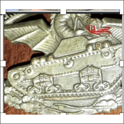 Estado: Esta decolorada en general, con muchas señales de uso. Oxido en la insignia. Se ve verde en las fotos, pero es negra.