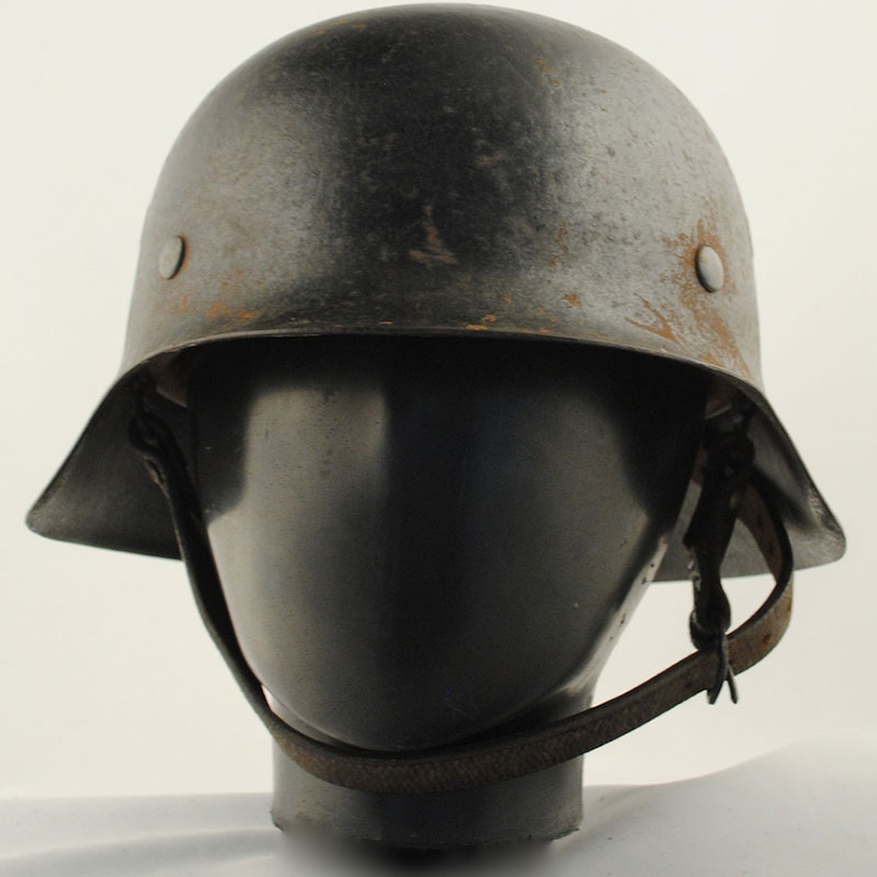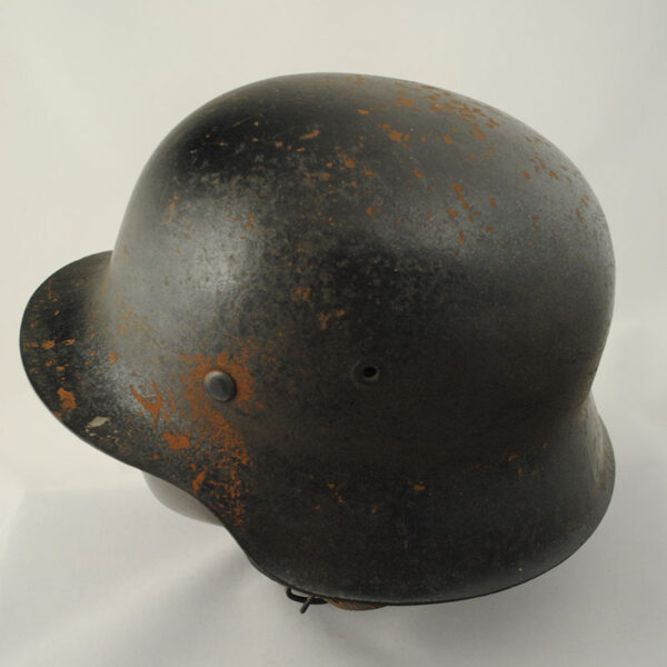 Casco modelo Aleman, posible otro origen. Bordes de corte brutos sin terminar.
