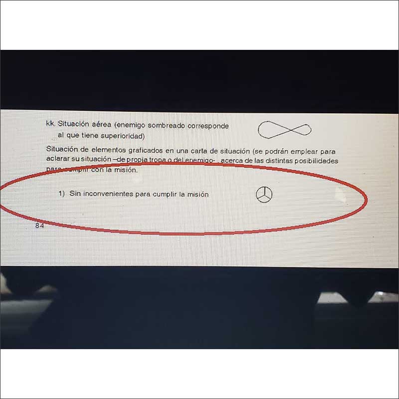 Comentarios del ForoHHD…a sea un simbolo diferente al de la paz que identifique a algun regimiento o grupo; o sea una errada reproduccion del clasico graffitti de la fundas de Vietnam; en ambas situaciones dos soldados de diferentes armas: Ejercito e IMARA, estuvieron en contacto para grabar sus fundas con el mismo simbolo. Recuerden que en muchas fotos se ven a soldados del EA y a Infantes de Marina comprtiendo el rancho o una misa.