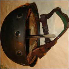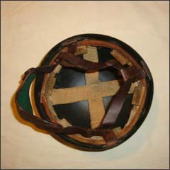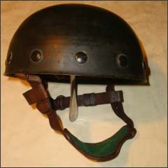 Casco argentino de paracaidista M44 ETA, borde sin plegar, atalaje de 3 puntos.