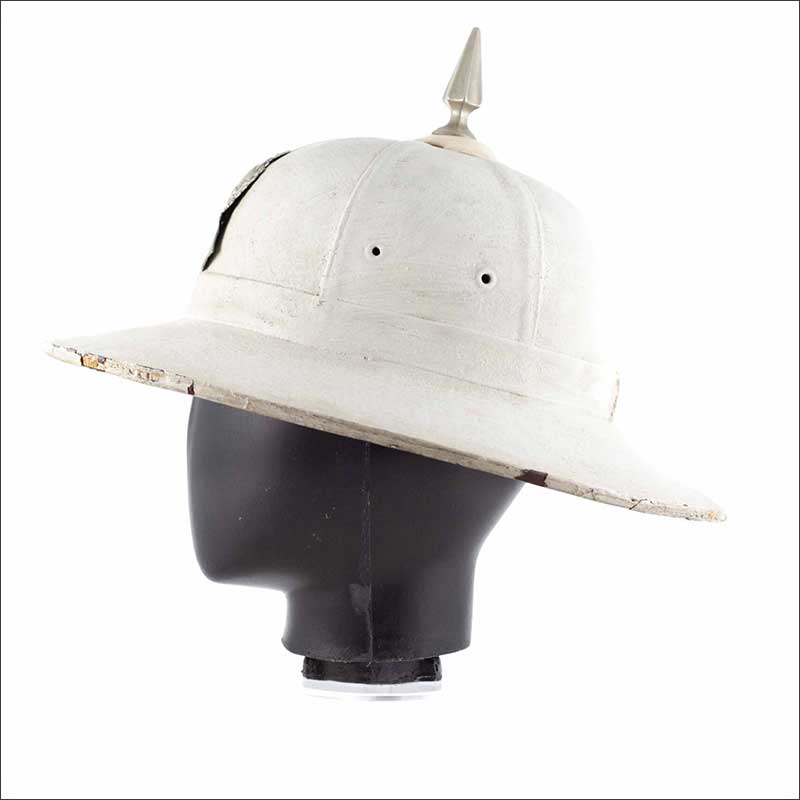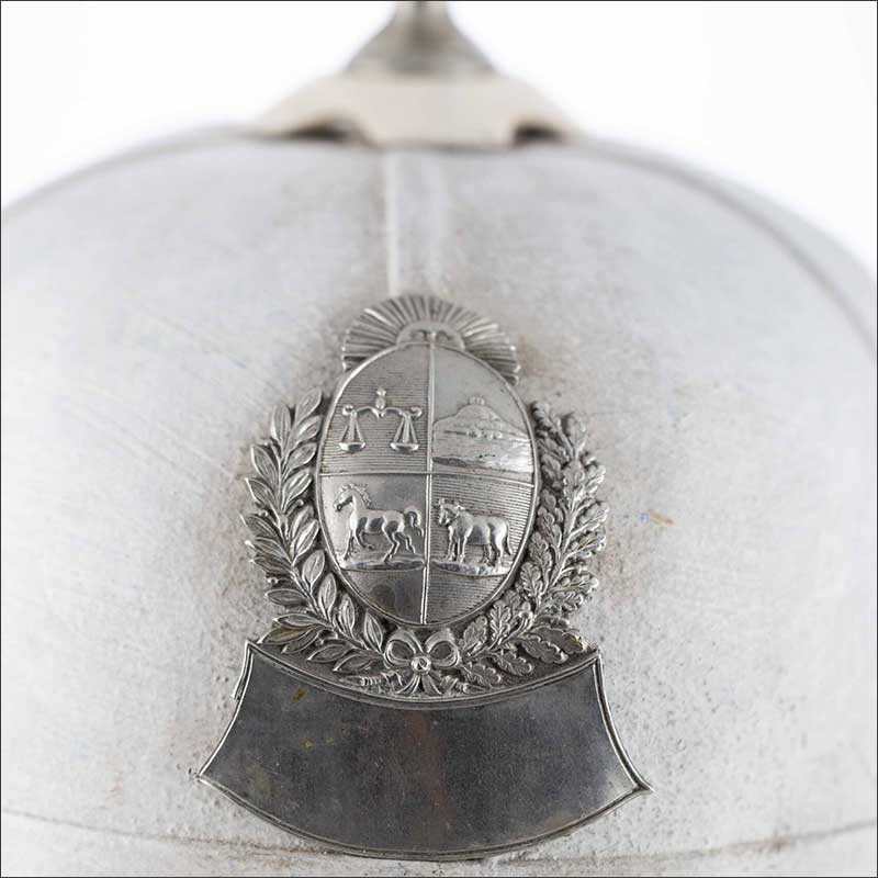 casco blanco con pico es el modelo que uso la policia uruguaya a partir de los años 1920 a 1940 , para uniforme de verano , de gala.