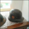 ET 64 single decal heer reissue helmet with a Spanish 250th blue division decal applied to the right side of the helmet. Both the heer decal and Spanish decal show considerable wear. Liner retains its original drawstring and is size 57. Very rare helmet. See pics for overall condition