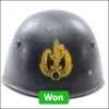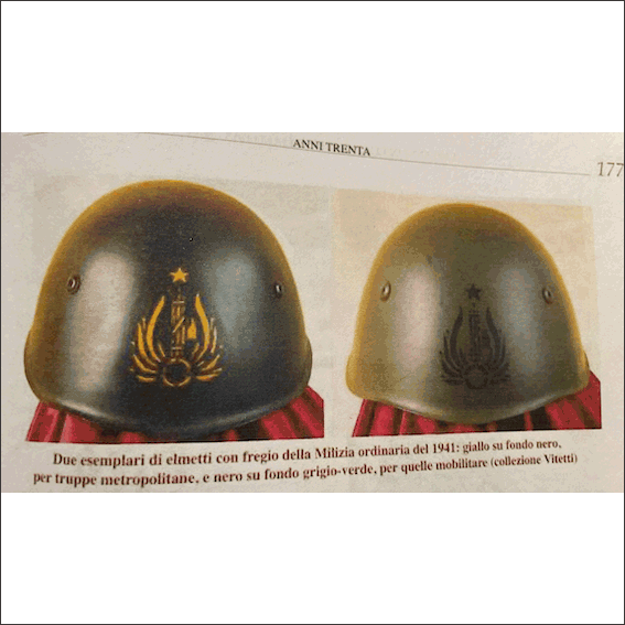 Casco M33 con fregio de la Milizia Ordinaria de 1938, amarillo sobre fondo negro de tropas metropolitanas.