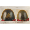 The helmet shell features a dark charcoal painted finish of which approximately 85% remains. The front of the helmet features a stenciled fascist symbol, and it is complete with its original liner and chin strap. The overall condition is very good. Please be sure to review all photos.