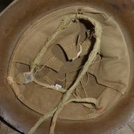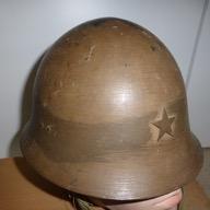 24.Army helmet with cover and canvas liner (for tropical or cold climates) The cover is the second model (star sewn directly to the cotton and reinforcement strap all around, used from 1943 onwards) Some say that the canvas liner was specially for the tropics as leather would rot more quickly, but it was also used in extreme cold which gave better protection to the wearer’s head. The helmet cover was used to deflect the extreme heat and also used for putting foliage on. Very nice patination on the shell.rare € 1190