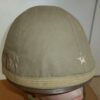 24.Army helmet with cover and canvas liner (for tropical or cold climates) The cover is the second model (star sewn directly to the cotton and reinforcement strap all around, used from 1943 onwards) Some say that the canvas liner was specially for the tropics as leather would rot more quickly, but it was also used in extreme cold which gave better protection to the wearer’s head. The helmet cover was used to deflect the extreme heat and also used for putting foliage on. Very nice patination on the shell.rare € 1190