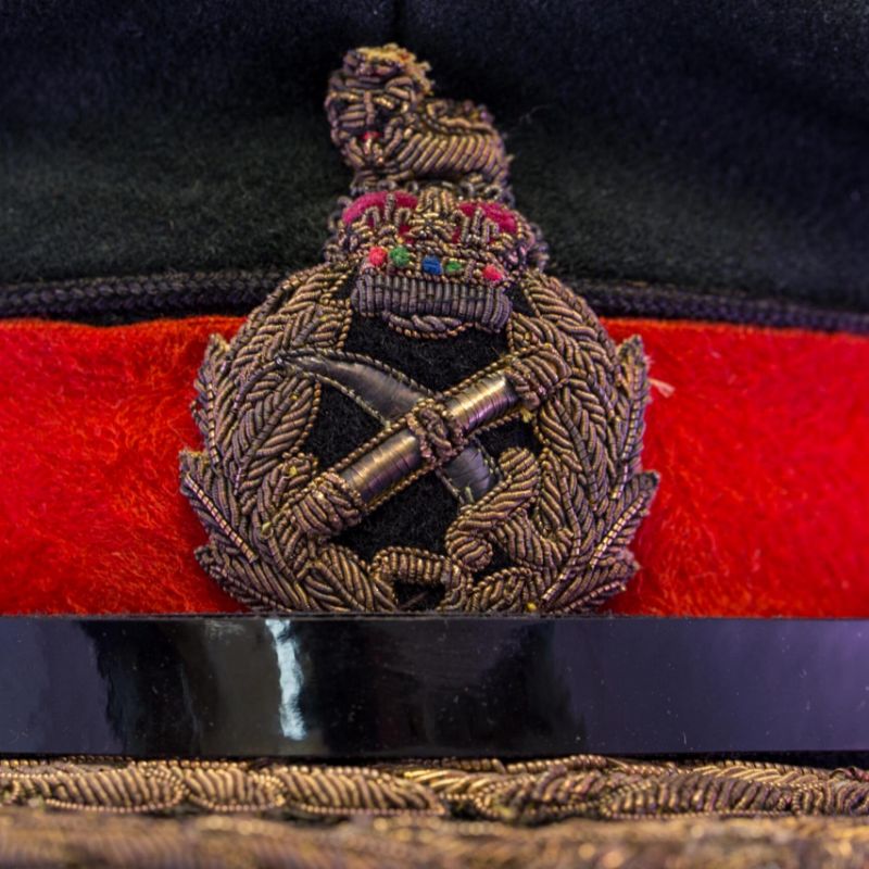 Peaked Cap, Lieutenat General, Royal Green Jackets Rgt. Shows Green top and is very Rare, Arounds 50s. Has no inner linning and therefor no marking hatter.