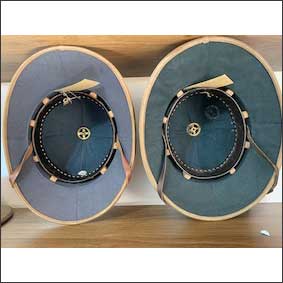 French Manufactured pithellmet used for luftwaffe. Logo of Marseilla company. Tipical four part body of the first model. Inside grey-blue. The inisde furnish with split and cork spacers indicate a early production date