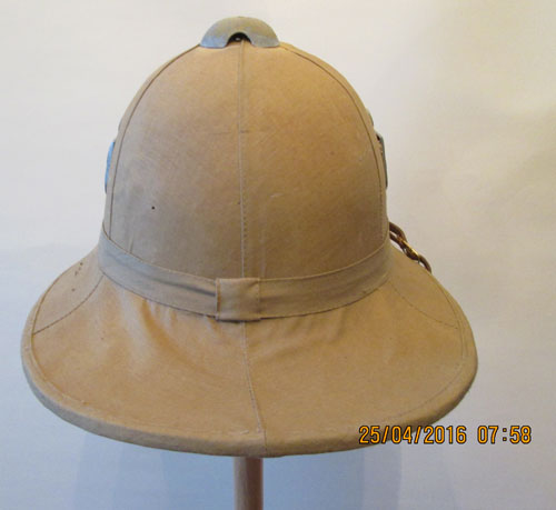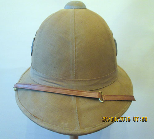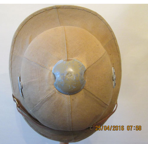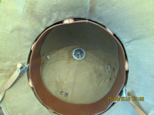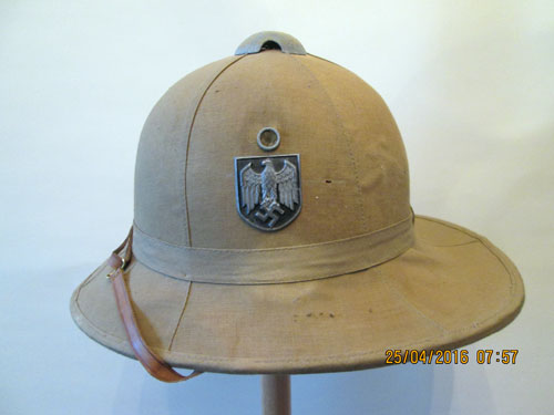 An Italian pith helmet in German Service with Army Insignia. There is only the size marking in this helmet. Italian and English helmets were used in great numbers by the German Army and Navy combat forces.