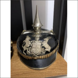 The pickelhaube is an approximate size 56, and is a beautiful example which is complete with all components and is uncleaned. The helmet