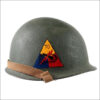 US M1swivel bale front seam helmet with 70th Tank Battalion insignia and First Sergeant stripes painted on the shell. This is likely an occupation forces used helmet. Both liner and helmet show only minimal wear and age. See pics for overall condition.